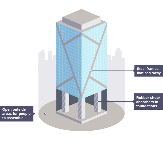 - Rubber shock absorbers in the foundations to absorb the Earth tremors.